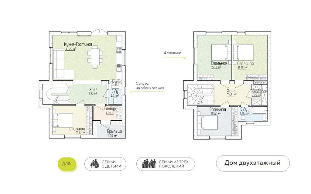 Двухэтажный дом из газобетонного блока, ЖБИ перекрытия, со свободной планировкой. Участок на выбор от 6 соток.