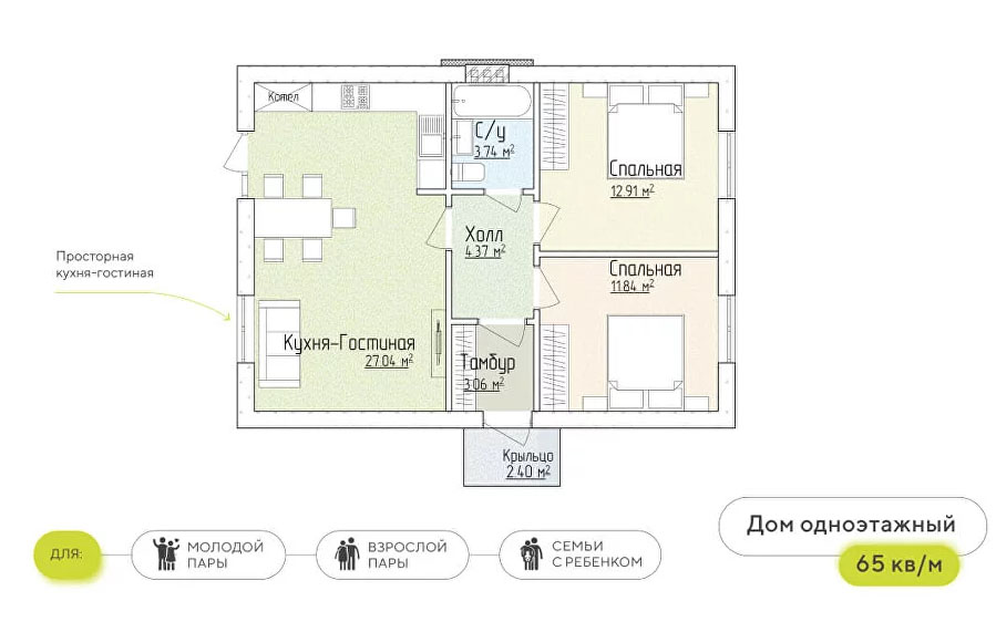 Индивидуальный одноэтажный дом из газобетона со свободной планировкой. Участок на выбор от 4,5 соток.